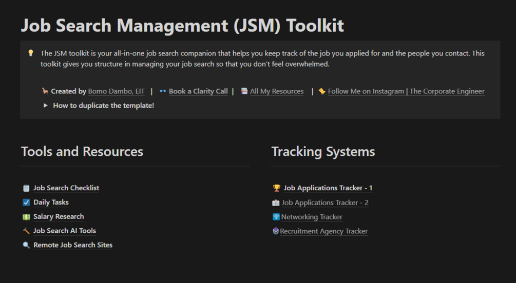 Navigate your job search journey with ease using our JSM Toolkit, meticulously crafted within Notion.